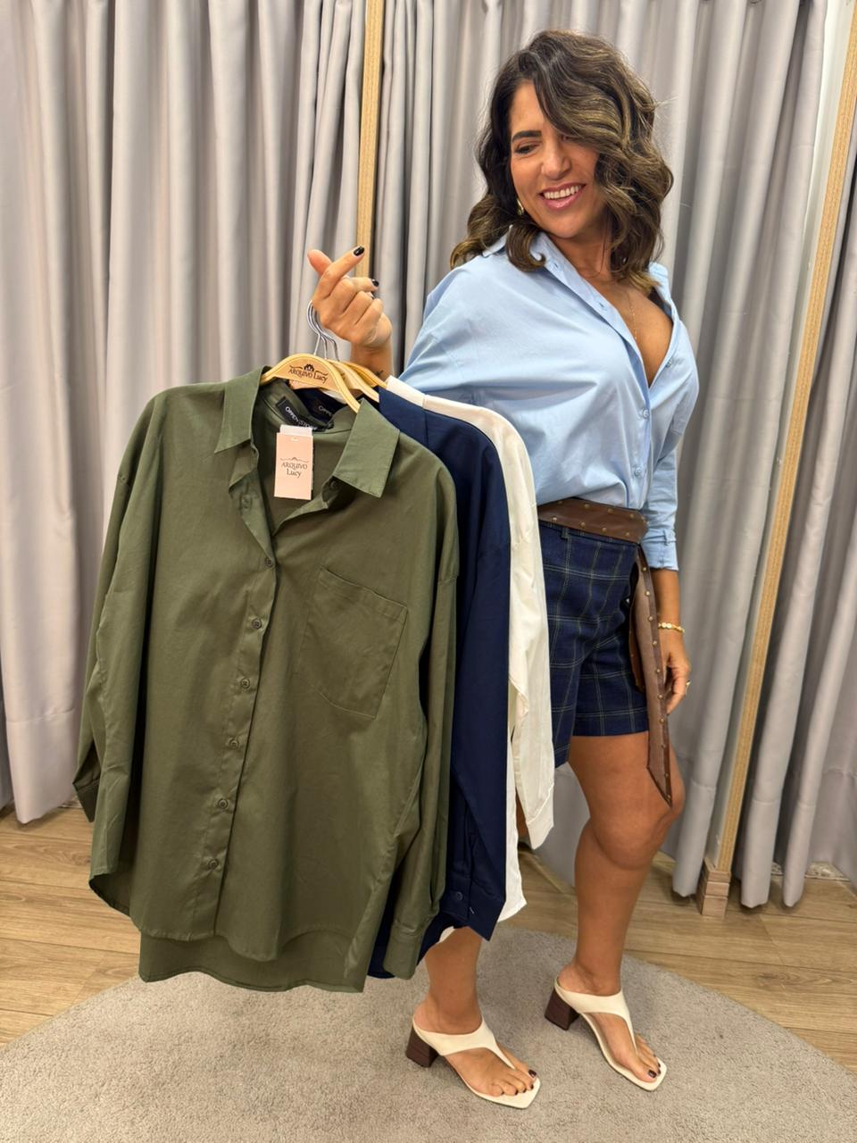 Camisa de tricoline oversized: moderna, leve e cheia de estilo. Perfeita pra usar solta, com nó, por dentro da calça ou sobreposições. Uma peça versátil, atual e indispensável no guarda-roupa.